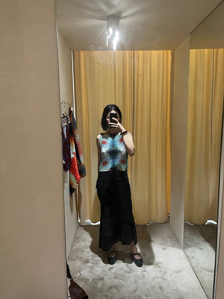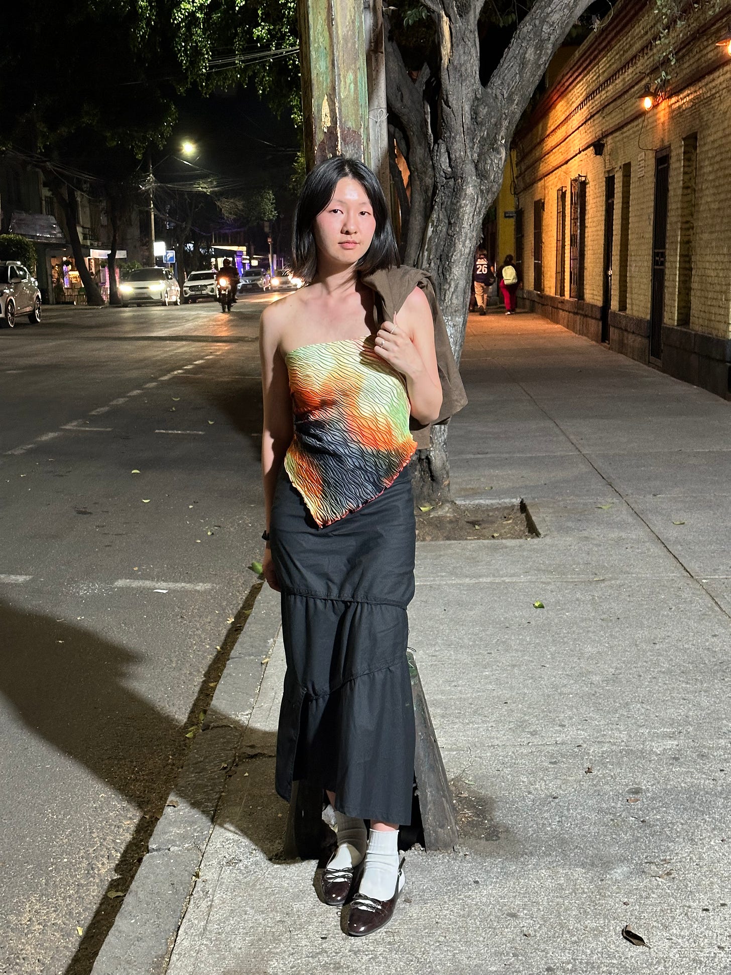 At night I changed into this bandana top that I bought a few days earlier from nin studio, a local brand that uses locally pleated fabrics. They had a lot of silhouettes reminiscent of Pleats please, but I liked how they also had a lot of fun colorful prints.