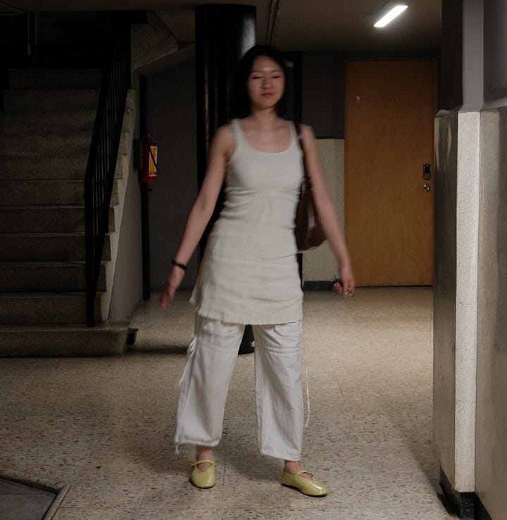 I also recently bought these grey velvet mary jane flats from the Dover Street Market in Paris. They are very soft, but very flat and lacking any support whatsoever. This photo made me realize how much my feet are supinated outwards, awkwardly twisting the shoes even when I’m standing perfectly straight. I started looking into getting insoles after this lmao.
