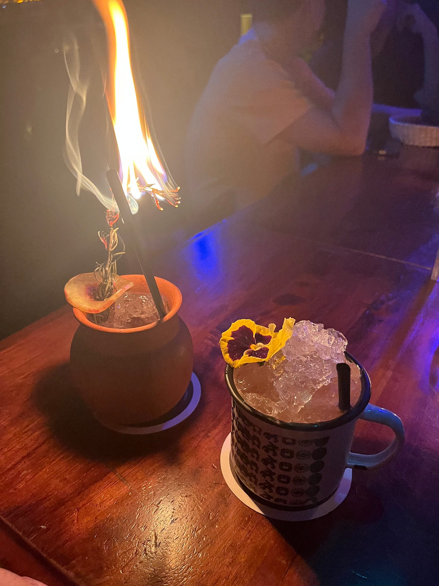 At night we dropped by the beer hall downstairs of where we were staying, where we tried chapulín, aka fried grasshopper. They were crunchy, and surprisingly acidic and juicy. We had a delicious dinner while the Easter parade went on in the background on the streets. Finally, we went to a bar where they set our drink on fire.